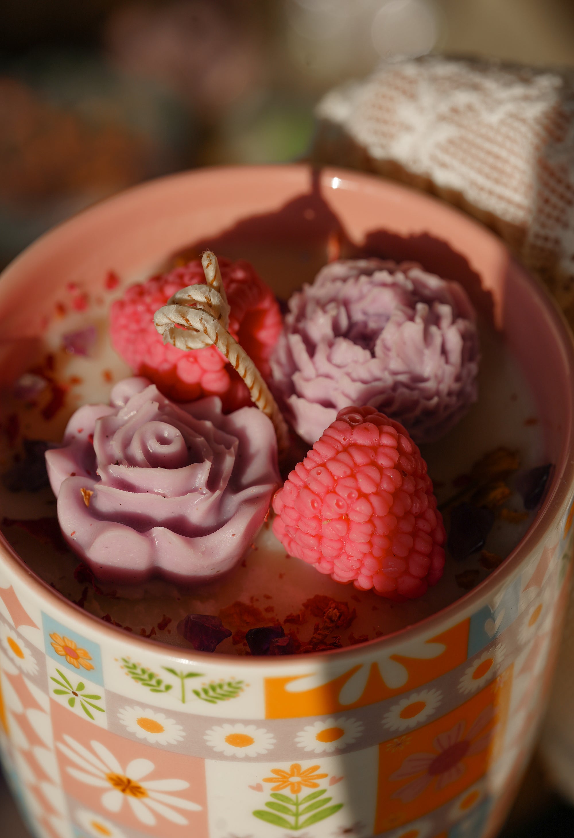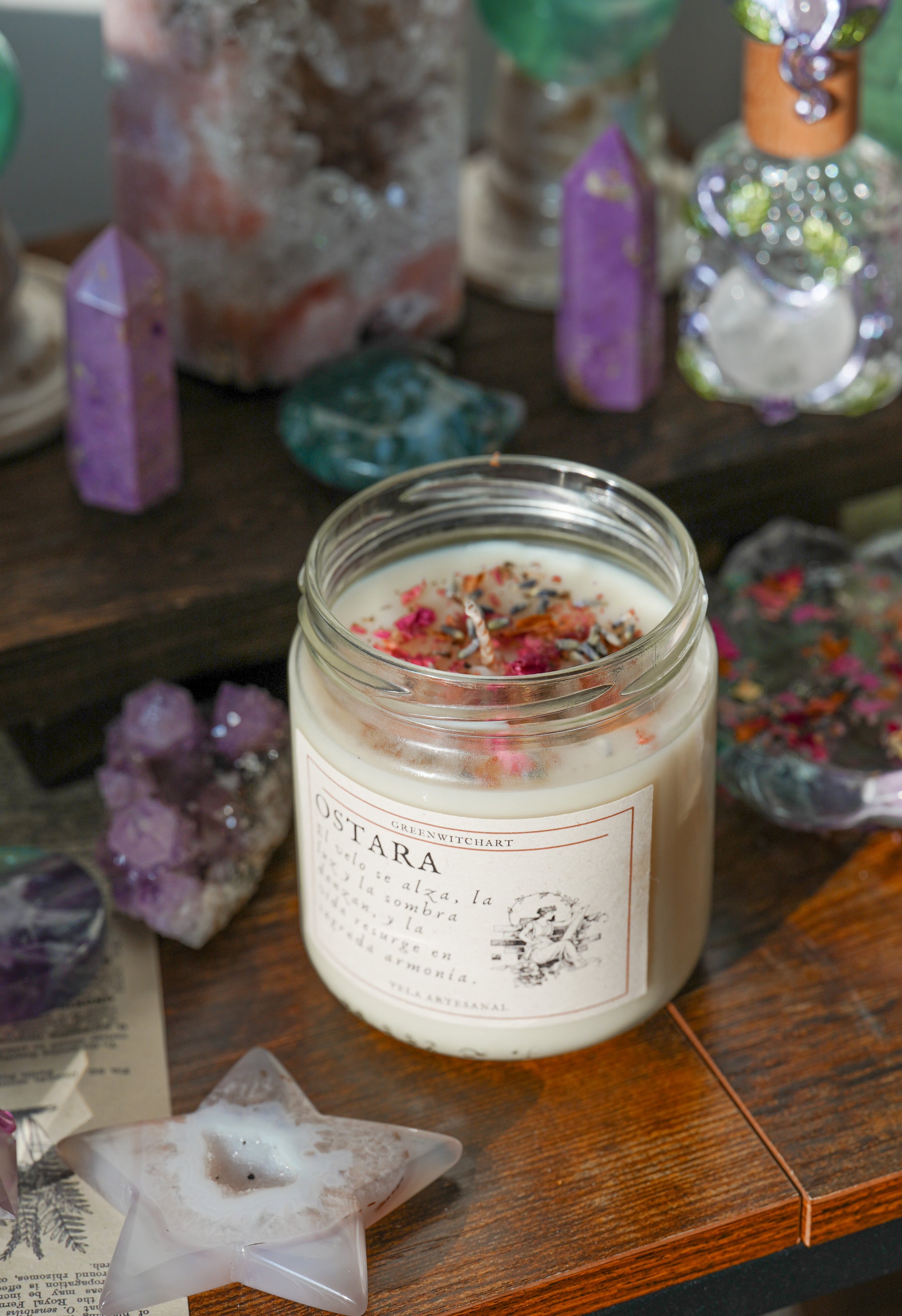 Todas las velas serán blancas (no admitimos colores para este producto) pero puedes elegir la decoración de la superficie. Hechas a mano con soja, natural y sin aditivos.